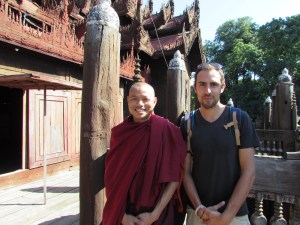 On pourrait citer une foultitude de beaux temples et pagodes à visiter, Mandalay n’en manque pas, mais je citerai simplement Shwe In Bin Kyaung, un monastère tout en teck peu visité des touristes et par conséquent paisible et reposant. J’admire les moines qui se recueillent dans les pagodes bondées, ça doit leur demander un effort de concentration phénoménal. Bref, ce monastère-là est aussi particulier à nos yeux car nous y avons rencontré un moine avec qui nous avons bavardé tout au long de notre visite. Un bel échange pour clôturer notre séjour en Birmanie !