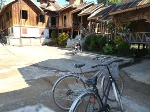 Après Monywa et ses hordes de singes (et de moustiques), nous avons rejoint Mandalay, 2e plus grande ville de la Birmanie, avant de pousser encore un peu plus loin au nord. Nous avons ainsi gaiement pris un bus qui date du temps des dinosaures (bonne nouvelle : il a survécu à la comète) pour nous rendre à Hsipaw, dans une région limite-limite selon les cartes du gouvernement (pardon maman). Dans la vraie vie, rien de bien alarmant : il y a bien quelques rebelles dans les montagnes autour et certaines zones ne sont accessibles qu’avec un permis, mais Hsipaw est ouverte au tourisme et ne présente aucun danger. De toute façon, nous ne sommes pas venus pour énerver les rebelles, mais plutôt pour sortir des sentiers battus et découvrir les bucoliques petits villages Shan aux alentours. Et quel est le meilleur moyen pour découvrir les bucoliques petits villages Shan aux alentours ? Eh ouiiii, le vélo !