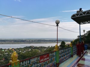 Évidemment, on n’a rien trouvé de mieux que de tenter la marche interminable jusqu’au sommet de la Sagaing Hill, d’où on peut avoir une vue imprenable sur tous les temples et sur la ville. Heureusement, un mec en scooter a eu pitié de nous et nous a emmené au sommet (par contre on a fait quasi tout le retour à pied, comme des guerriers).