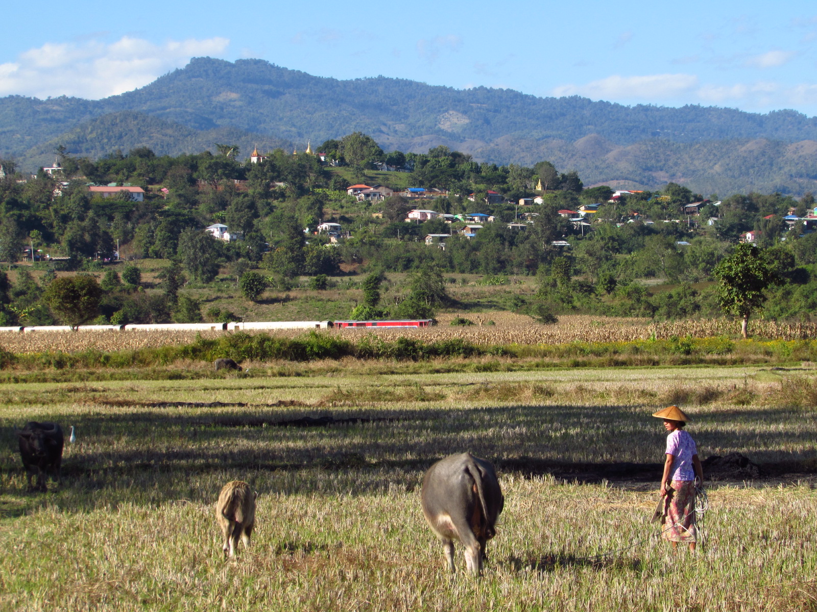 Mais le véritable trésor de Hsipaw se trouve en dehors de la ville… Il suffit de pédaler 10 minutes pour se retrouver subitement en plein cœur d’une magnifique campagne verdoyante et tomber sur les premiers villages Shan.