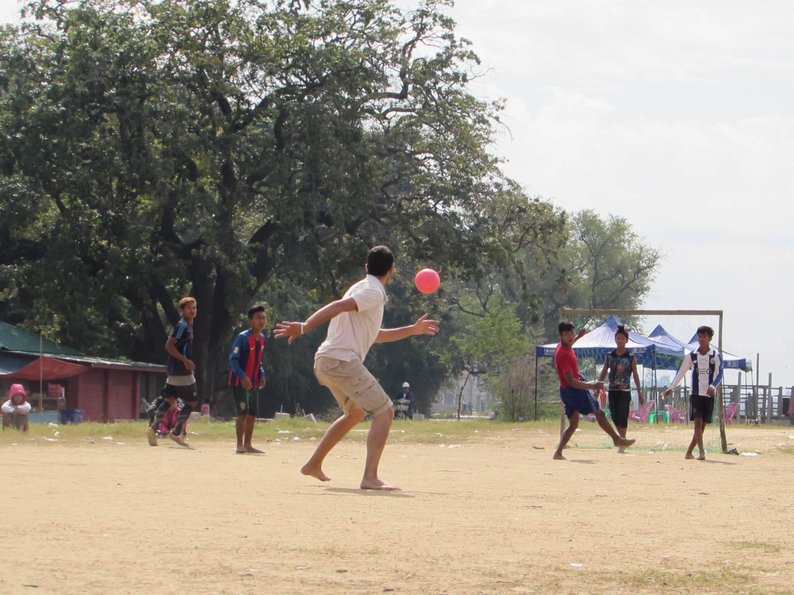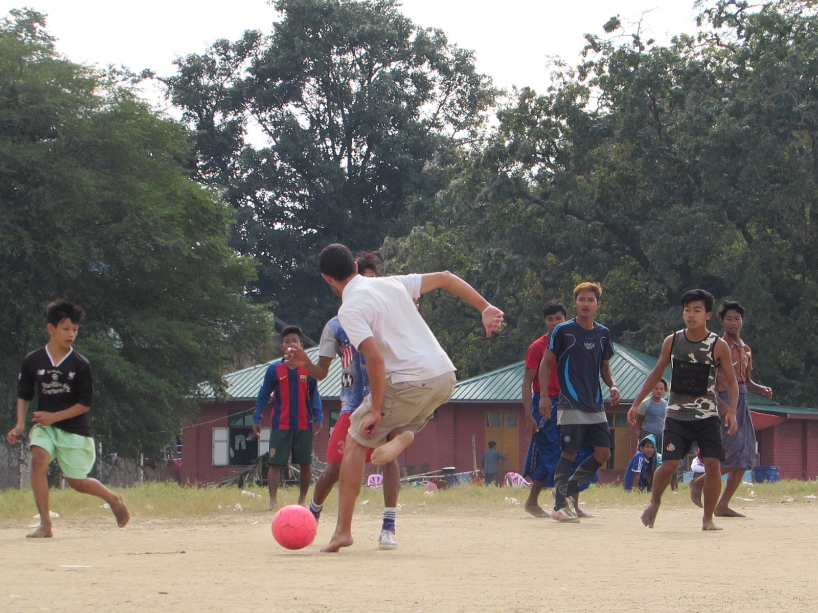 De l’autre côté, on aperçoit, en cherchant un bon point de vue photo, des jeunes qui jouent au foot. Ni une ni deux, Hon se joint à la partie ! Mais lorsqu’il s’arrête, on découvre avec horreur qu’un de ses pieds a bien souffert… On arrive à trouver des pansements (qui sentent l’eucalyptus, sympa), avant de clopiner jusqu’à un tuk-tuk pour rejoindre Sagaing et sa foultitude de payas.