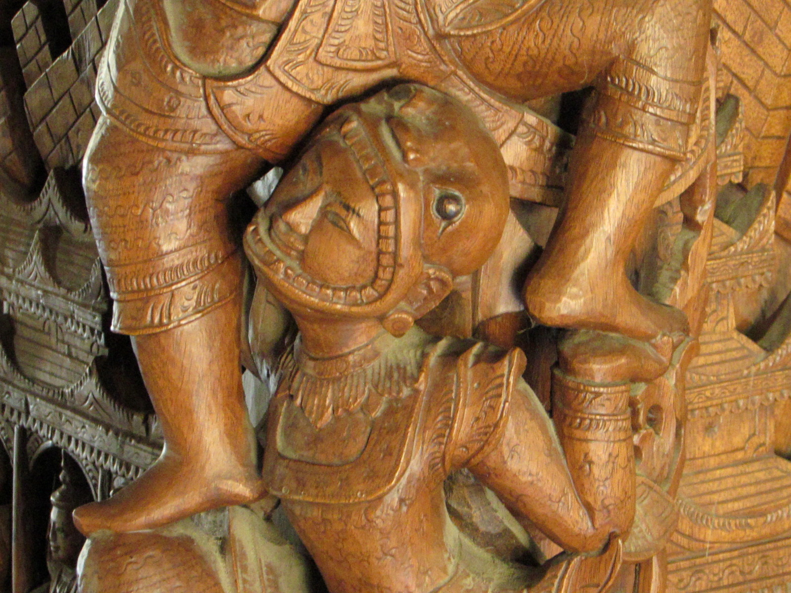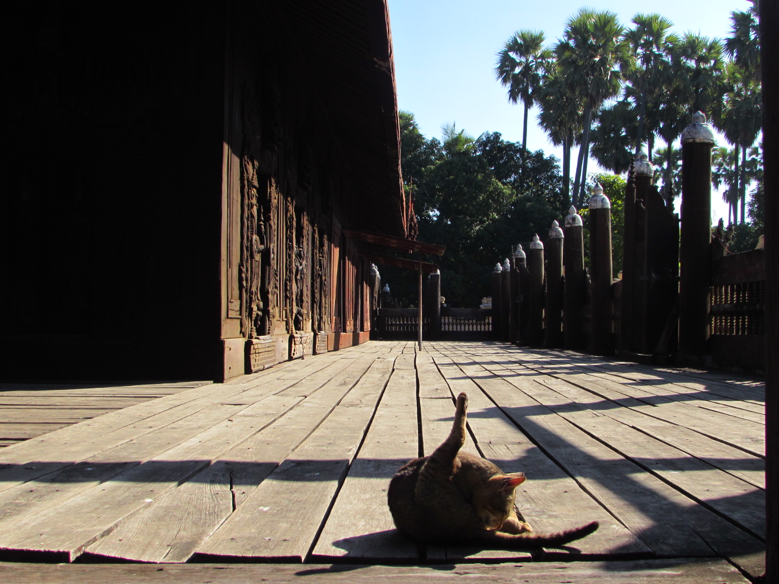 On pourrait citer une foultitude de beaux temples et pagodes à visiter, Mandalay n’en manque pas, mais je citerai simplement Shwe In Bin Kyaung, un monastère tout en teck peu visité des touristes et par conséquent paisible et reposant. J’admire les moines qui se recueillent dans les pagodes bondées, ça doit leur demander un effort de concentration phénoménal. Bref, ce monastère-là est aussi particulier à nos yeux car nous y avons rencontré un moine avec qui nous avons bavardé tout au long de notre visite. Un bel échange pour clôturer notre séjour en Birmanie !