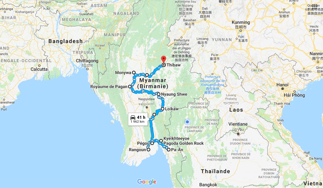 Et bien sûr, une petite carte de notre périple en Birmanie :