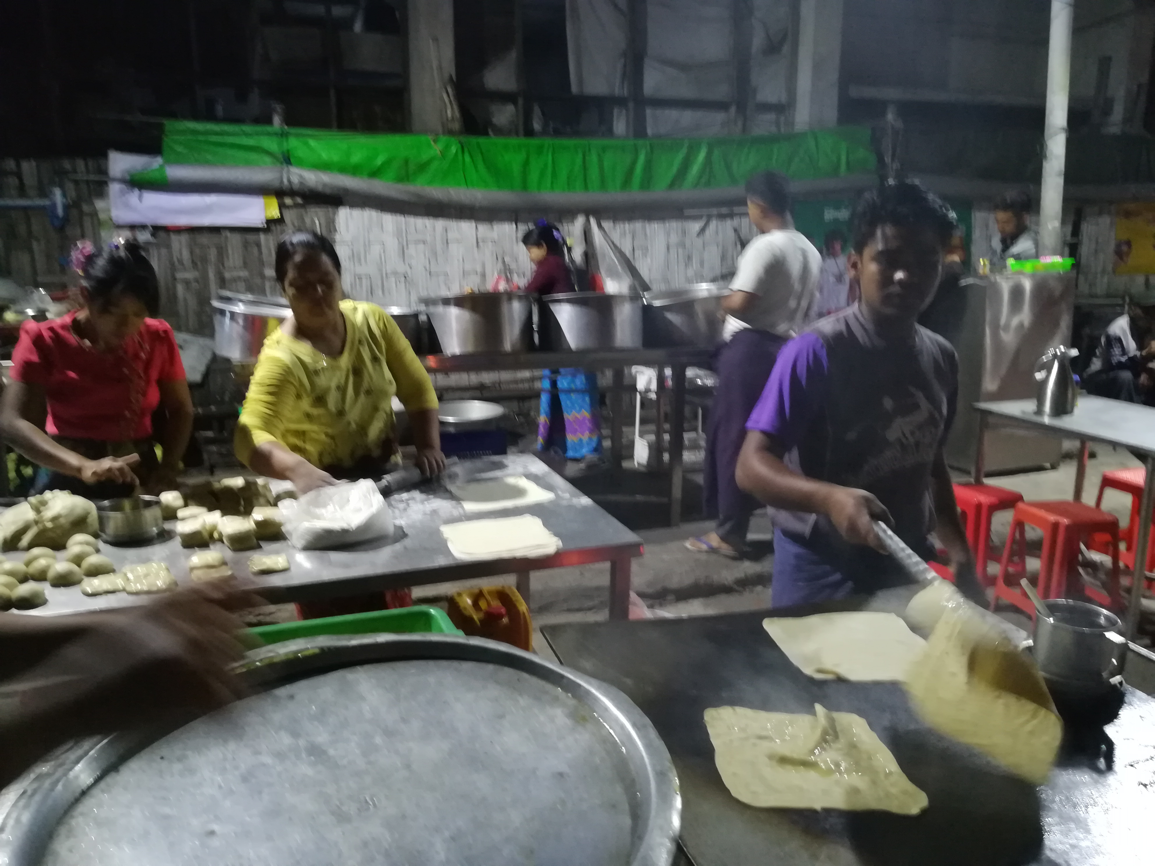 On reste 2 jours à Hsipaw puis on retourne à Mandalay, dernière étape de notre périple en Birmanie ! Elle nous avait fait une très bonne impression lors de notre passage éclair et on est impatient d’y passer plus de temps. Première impression : cette ville sent le pancake et la noix de coco. Deuxième impression : la vie y semble douce et le centre-ville est agréable, avec ses trottoirs larges et sa belle promenade le long des murailles du palais. Mandalay a ce côté moderne et agréable de certaines grandes villes, ainsi qu’une forte immigration chinoise et indienne… mais j’y reviendrai.