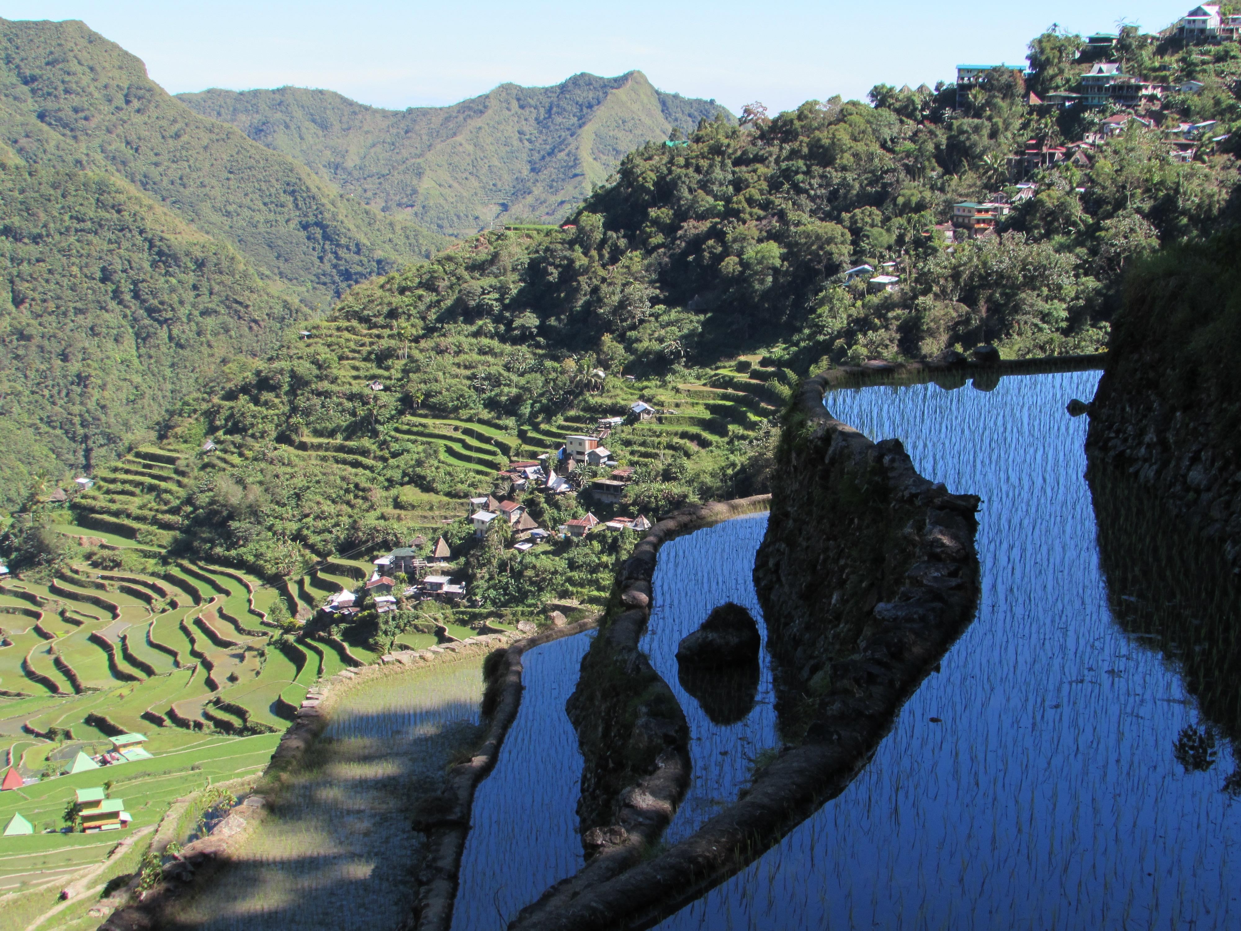 On finit notre promenade par un tour à la puissante cascade de Tappiya, avant de rentrer dans la lumière déclinante par le « vieux » village de Batad, niché au creux des rizières.