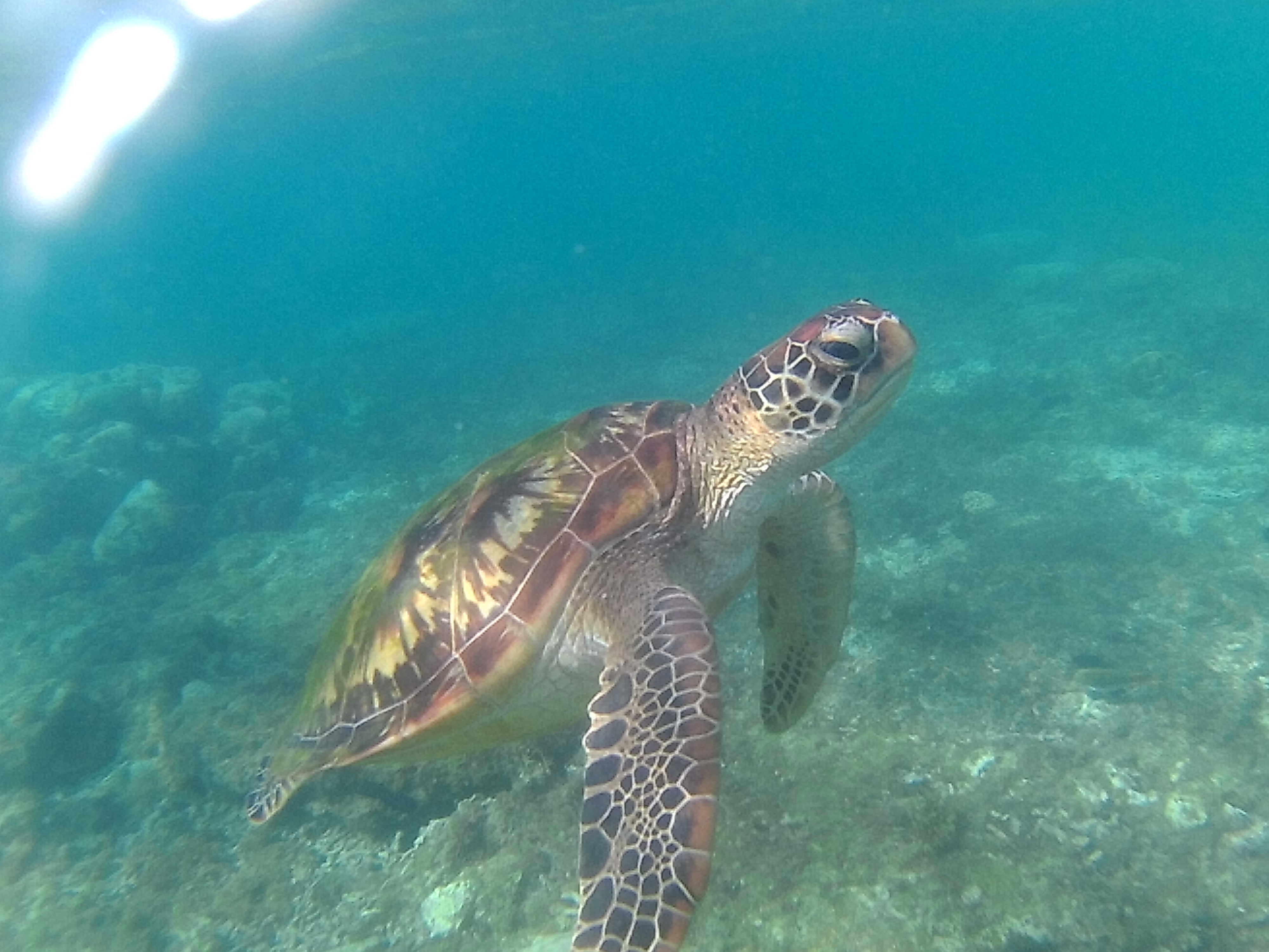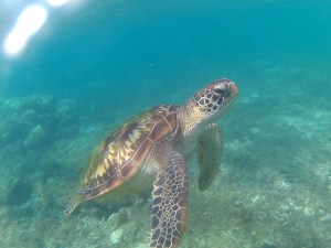Le snorkeling à Coron, c’est bien sympa, mais ça manque de tortues. Hop, un avion, deux bus et un bateau plus tard, nous voilà à Apo Island, connue pour ses tortues qui viennent naturellement tout près du rivage pour se nourrir.