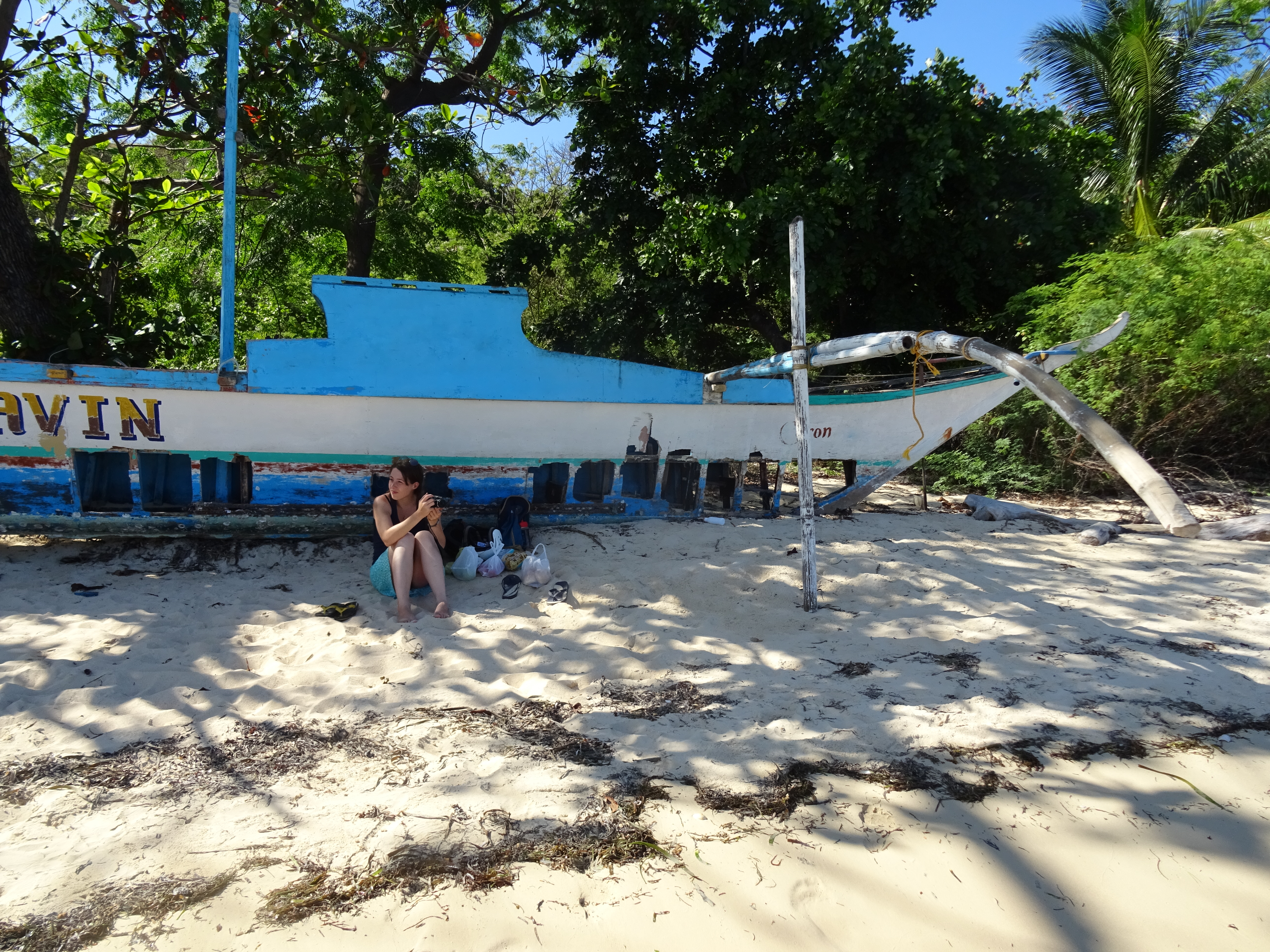 Six jours, pendant lesquels nous avons bien exploré l’île sur notre fidèle scooter de compétition. Chutes d’eau, petits restos, snorkeling, villages de chamanes… Tout ça a certes contribué au charme de Siquijor, mais c’est un ensemble de petites choses qui ont achevé de nous conquérir. Les maisons de bois blanchi par le sel, qui semblent abandonnées mais sont pourtant décorées de breloques en coquillage qui pendouillent aux fenêtres et aux poutres, la mer sublime et transparente, les chats partout, les grands « helloooo », les sourires des gens, les plantes bizarres dans des pots encore plus bizarres…