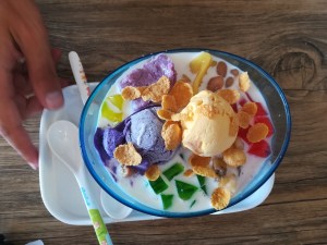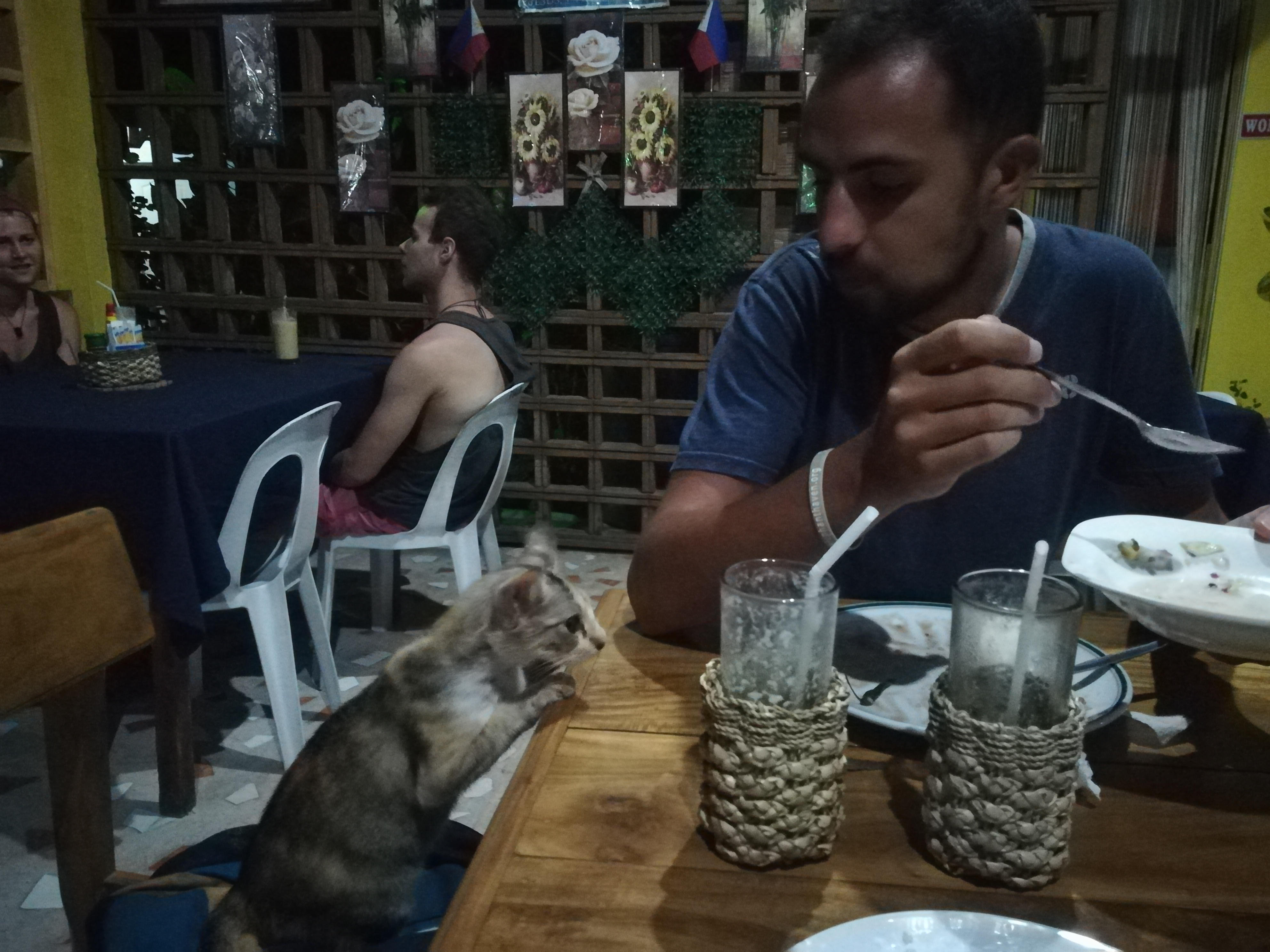 Faisons donc un petit écart gastronomique. Les Philippins adorent leur cuisine, mais le reste du monde se demande bien pourquoi… De manière générale, la nourriture est assez simple, grasse, avec parfois des associations un peu étranges de goûts (le petit pain choco-fromage, un classique) et beaucoup de vinaigre. Sans parler des nombreux fast food à tous les coins de rue… Mais à Siquijor, on a très bien mangé. Gros coup de cœur pour le kinilaw, sorte de ceviche philippin absolument délicieux, et de manière générale pour le poisson grillé.