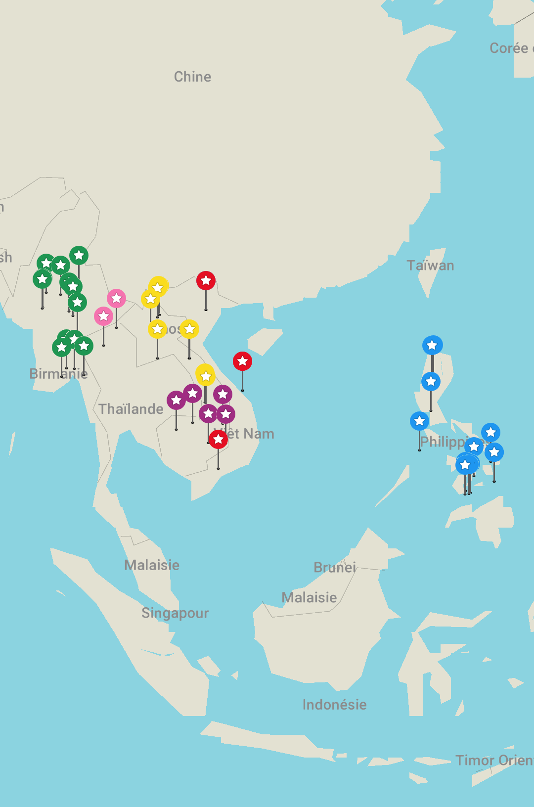 Les Philippines, donc… Changement de décor et d’ambiance pour ces dernières semaines ! Les Philippines, c’est une sorte de Cuba de l’Asie : une bonne dose d’influence hispanico-américaine, de la débrouille et de la bonne humeur à toute épreuve, des couleurs hallucinantes partout et un catholicisme empreint de superstitions locales, mais bien présent au quotidien. On a passé environ 3 semaines dans cet ensemble de plus de 7600 îles et mine de rien, on a bien vadrouillé !
