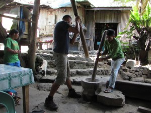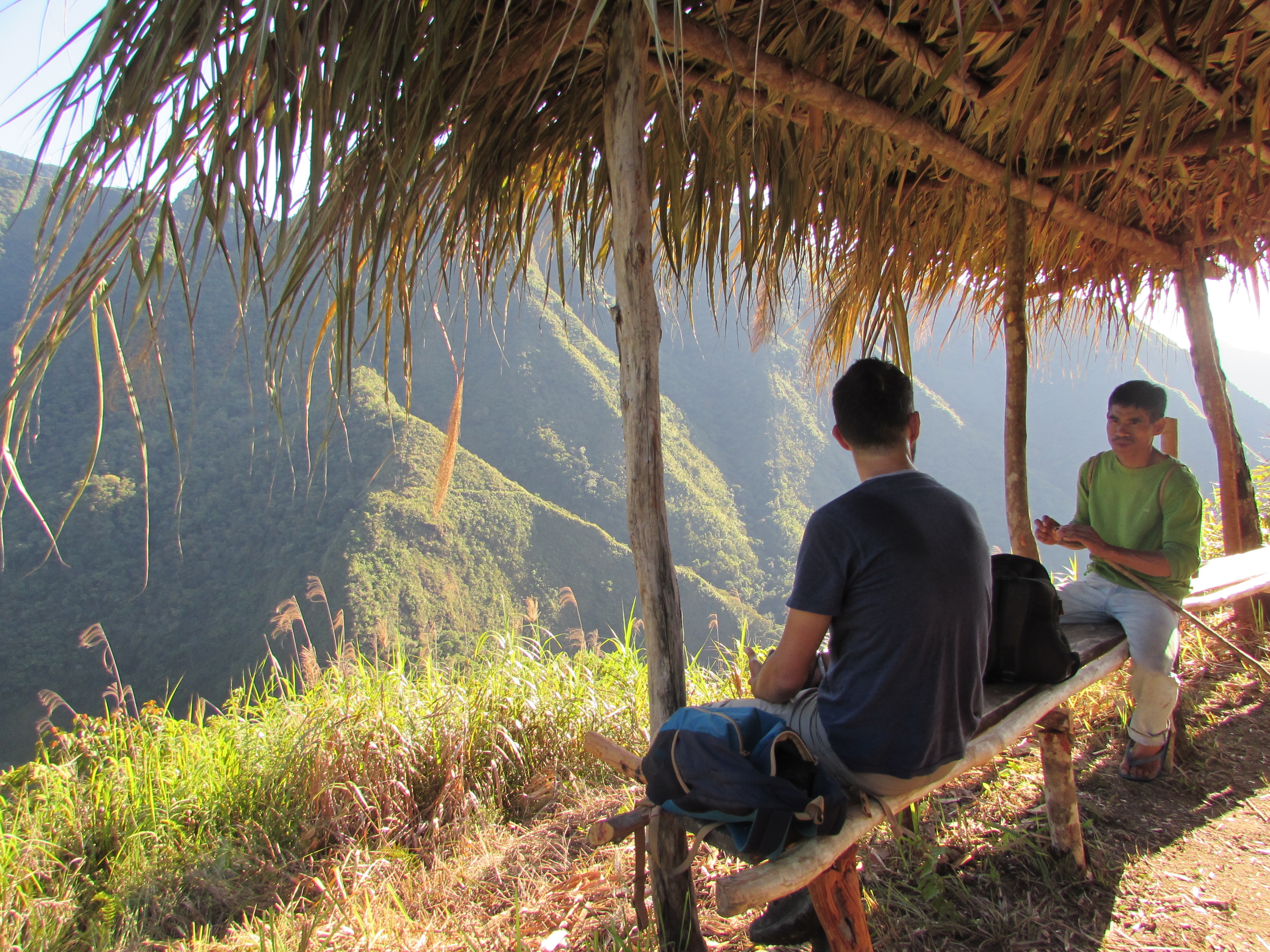 Moment mémorable à Hapao : on s’est arrêté dans une école donner une vingtaine de stylos (on en avait tout un stock depuis notre passage au village de Muang Ngoi au Laos…) et on a eu droit en remerciement à l’hymne ifugao entonné par une vingtaine de petites voix perplexes. Un très beau chant, qui parle du vert des jeunes pousses, de l’or du riz prêt pour la récolte et du bleu des rizières en eau après la moisson. On ne savait pas trop où se mettre, mais c’était bien chou !