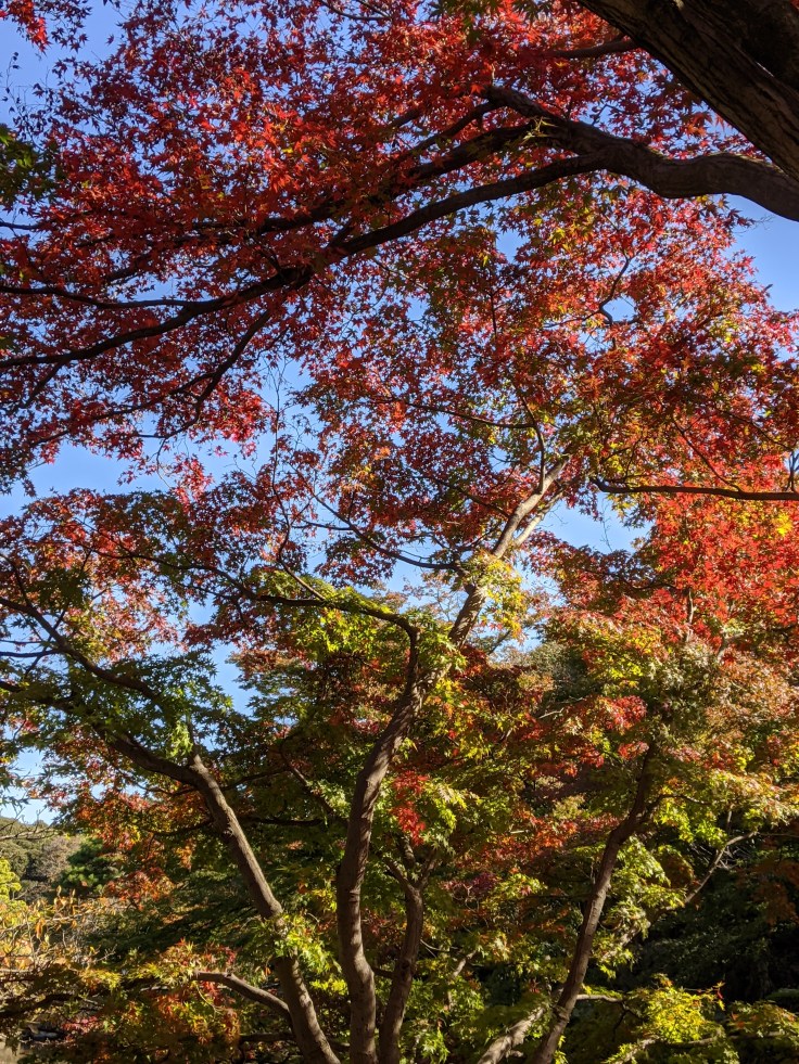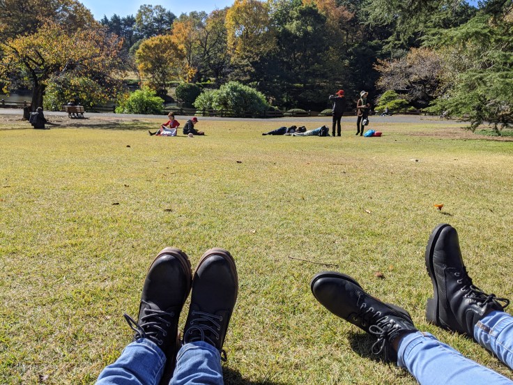– On profite du soleil en nous baladant au parc Shinjuku Gyoen, grand jardin impérial à la pelouse impeccablement tondue (et payant, sans doute pour continuer d’assurer une tonte de qualité).