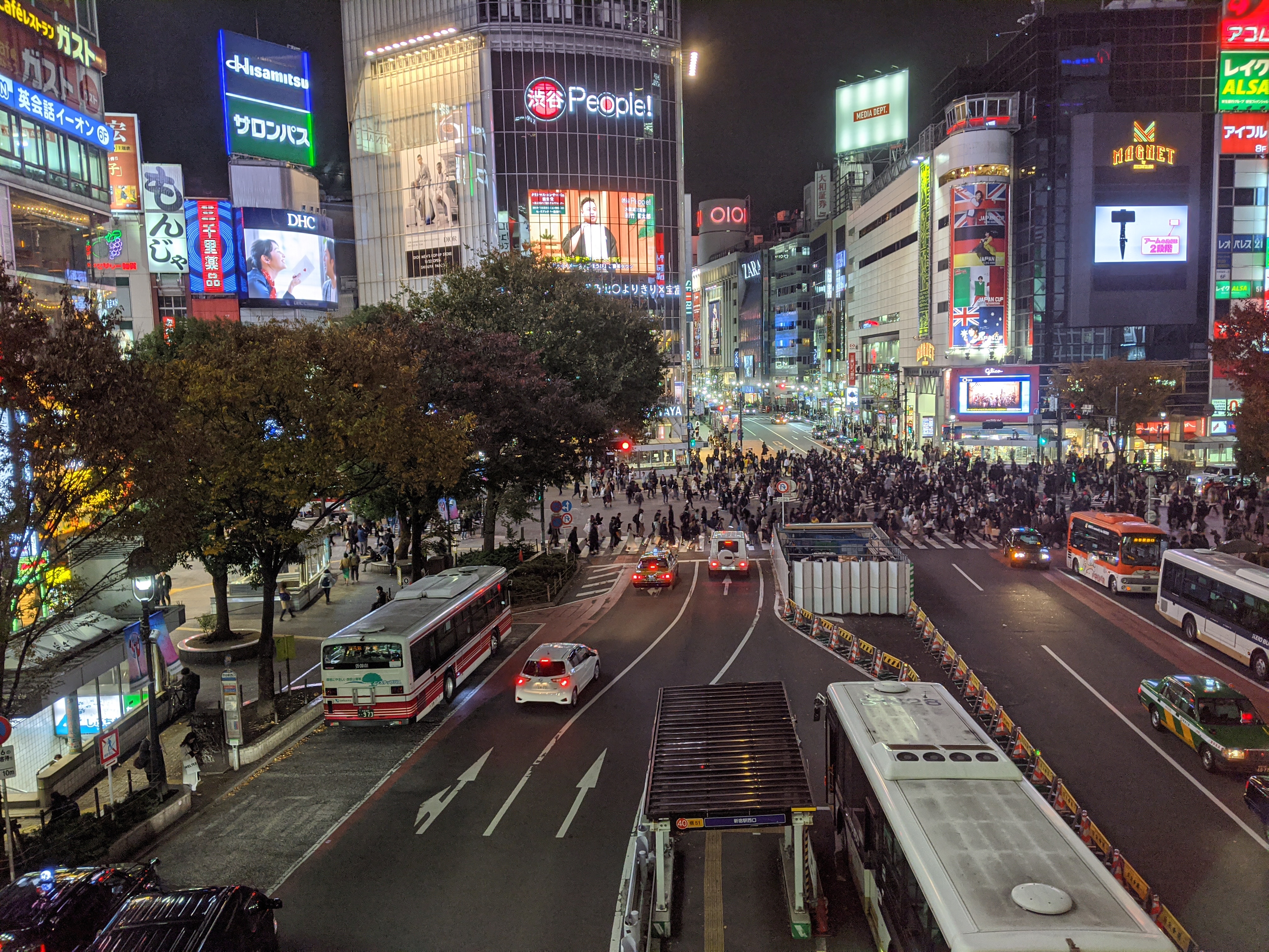 – La nuit tombe tôt, idéal pour un rapide tour à Shibuya, connu notamment pour son carrefour où des milliers de piétons traversent en même temps, dans toutes les directions !