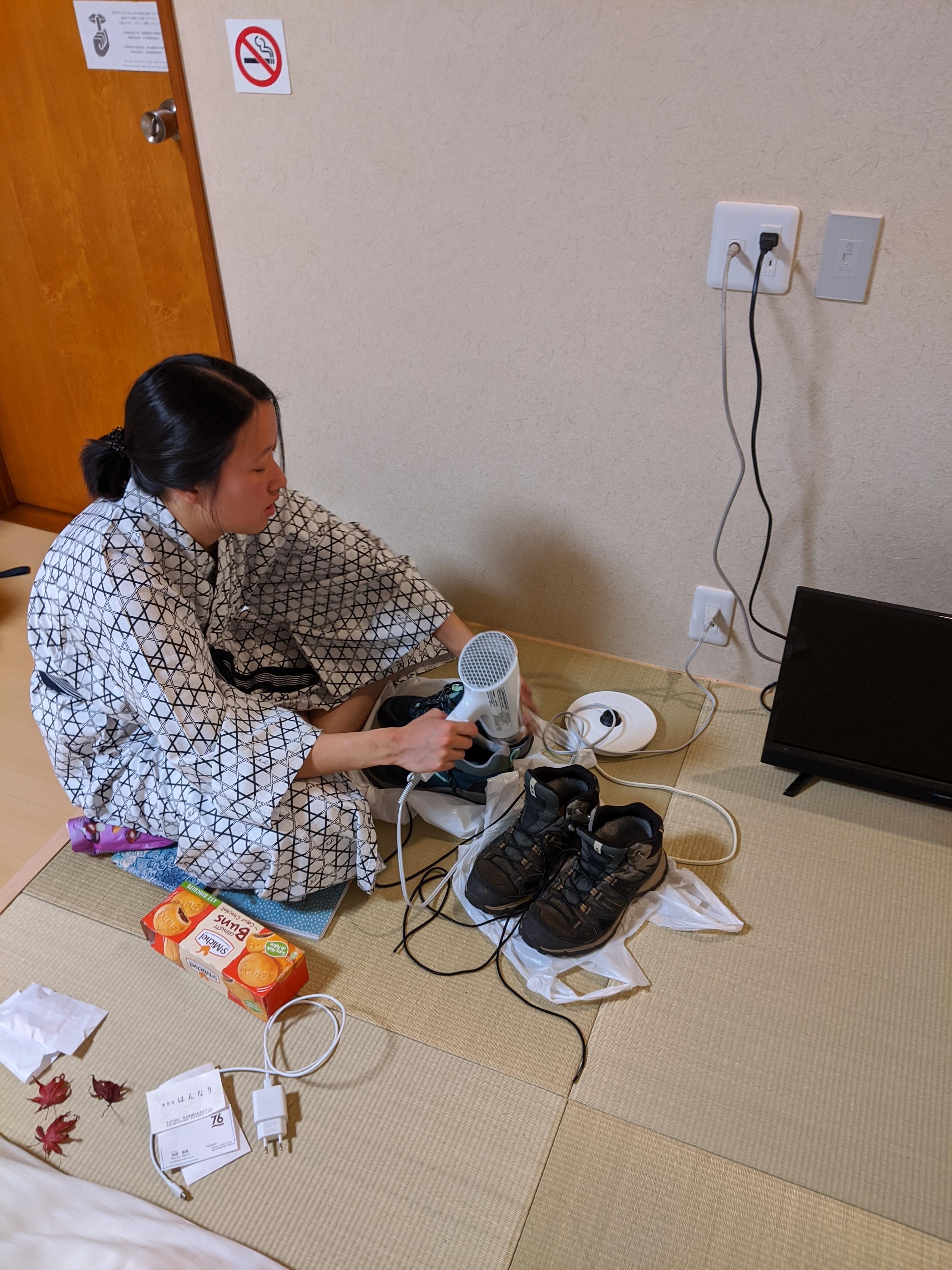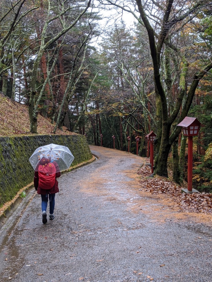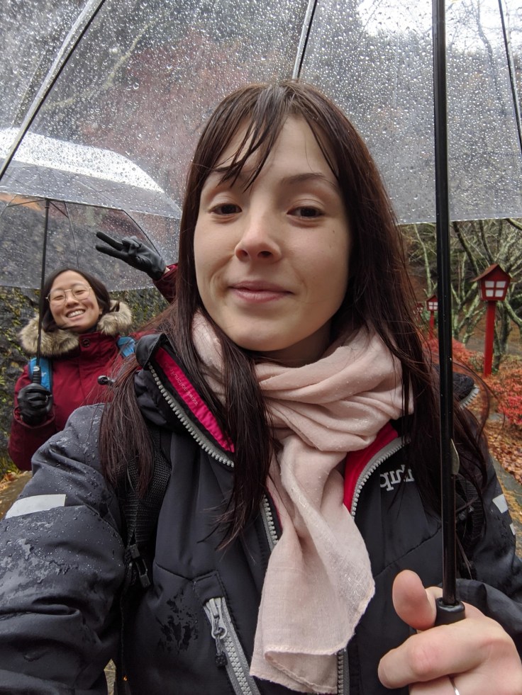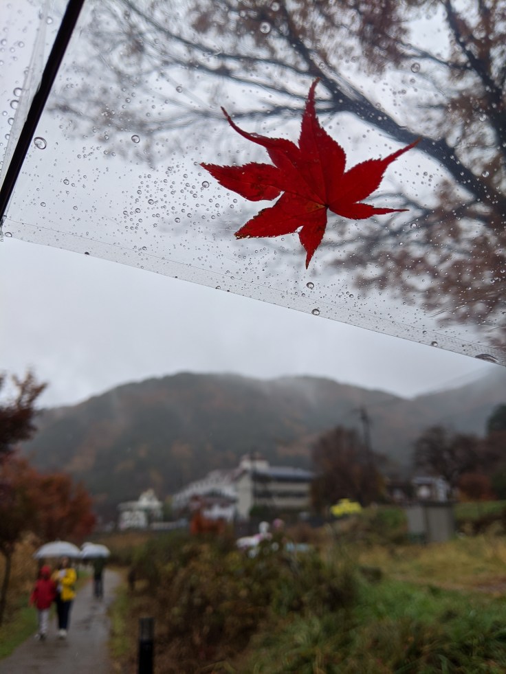 Qu’à cela ne tienne, on est à deux pas de notre ryokan, on va poser nos affaires et partir explorer le coin quand même, telles deux guerrières armées de petits parapluies en plastique transparent.