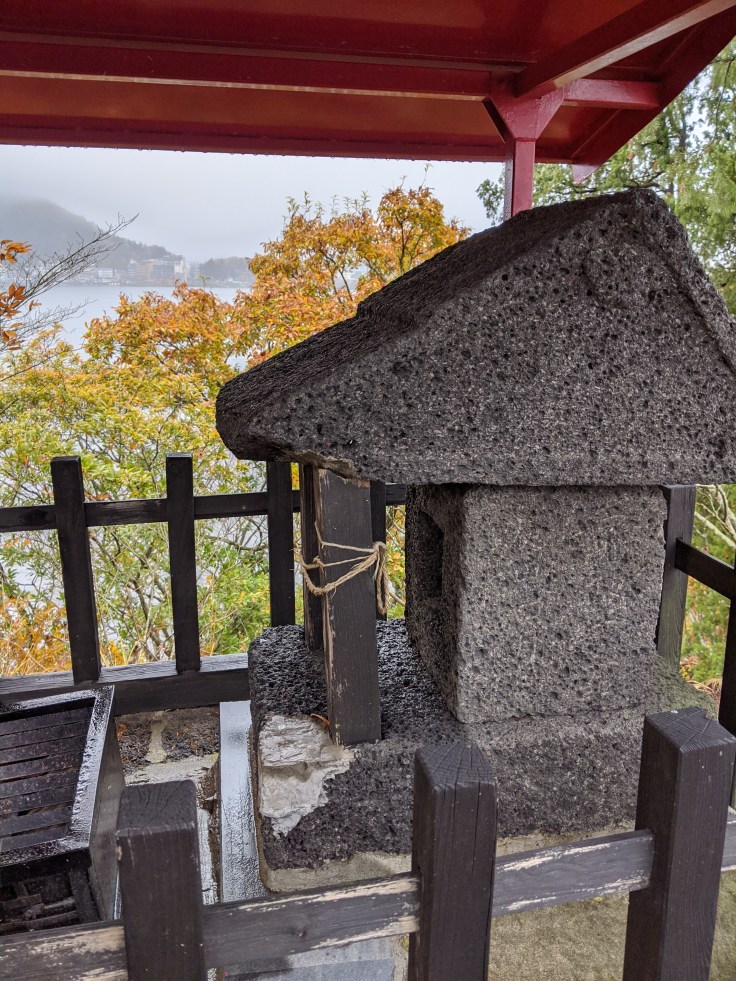 Pour fêter dignement mon anniversaire, nous avons décidé de passer deux jours au pied du mont Fuji, dans la petite ville de Fujiyoshida près du lac Kawaguchi. Le lac est réputé à cette saison pour ses magnifiques couleurs d’automne et sa vue imprenable sur le Fuji… Et comme on ne fait pas les choses à moitié, nous avons aussi réservé un ryokan (auberge traditionnelle japonaise) avec onsen (source chaude) privé – bref, de quoi se faire bien plaiz pour l’occasion.