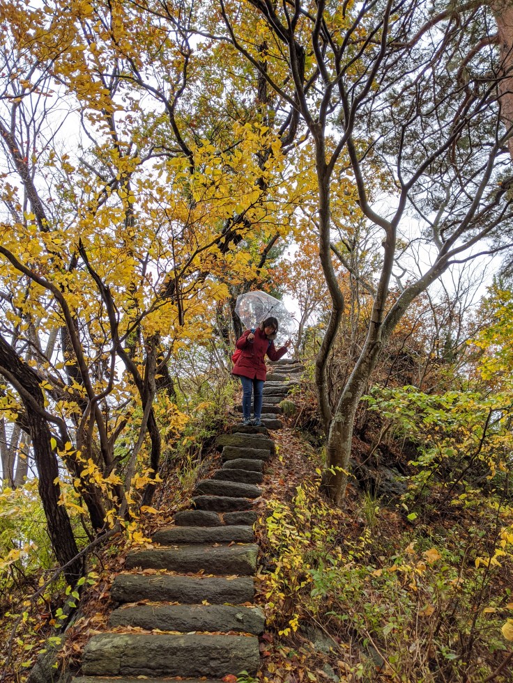 On garde le sourire, même trempées comme des soupes ! Le sentier jusqu’à la pagode est vraiment très beau et grâce à la pluie, on en profite sans la horde de touristes habituelle.