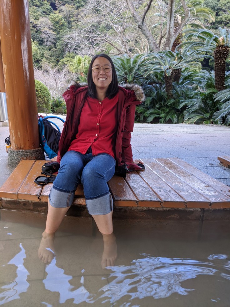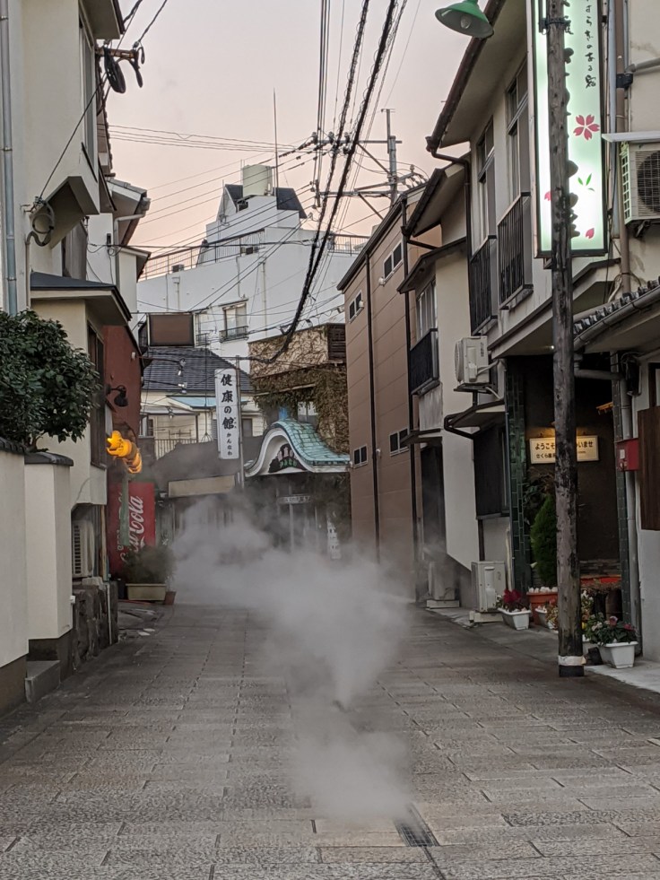 Bon, c’est bien beau tout ça, mais ne manquerait-il pas quelque chose à cette visite de Beppu, ville réputée pour ses sources chaudes ? Mais ouiiiiii, un onsen !