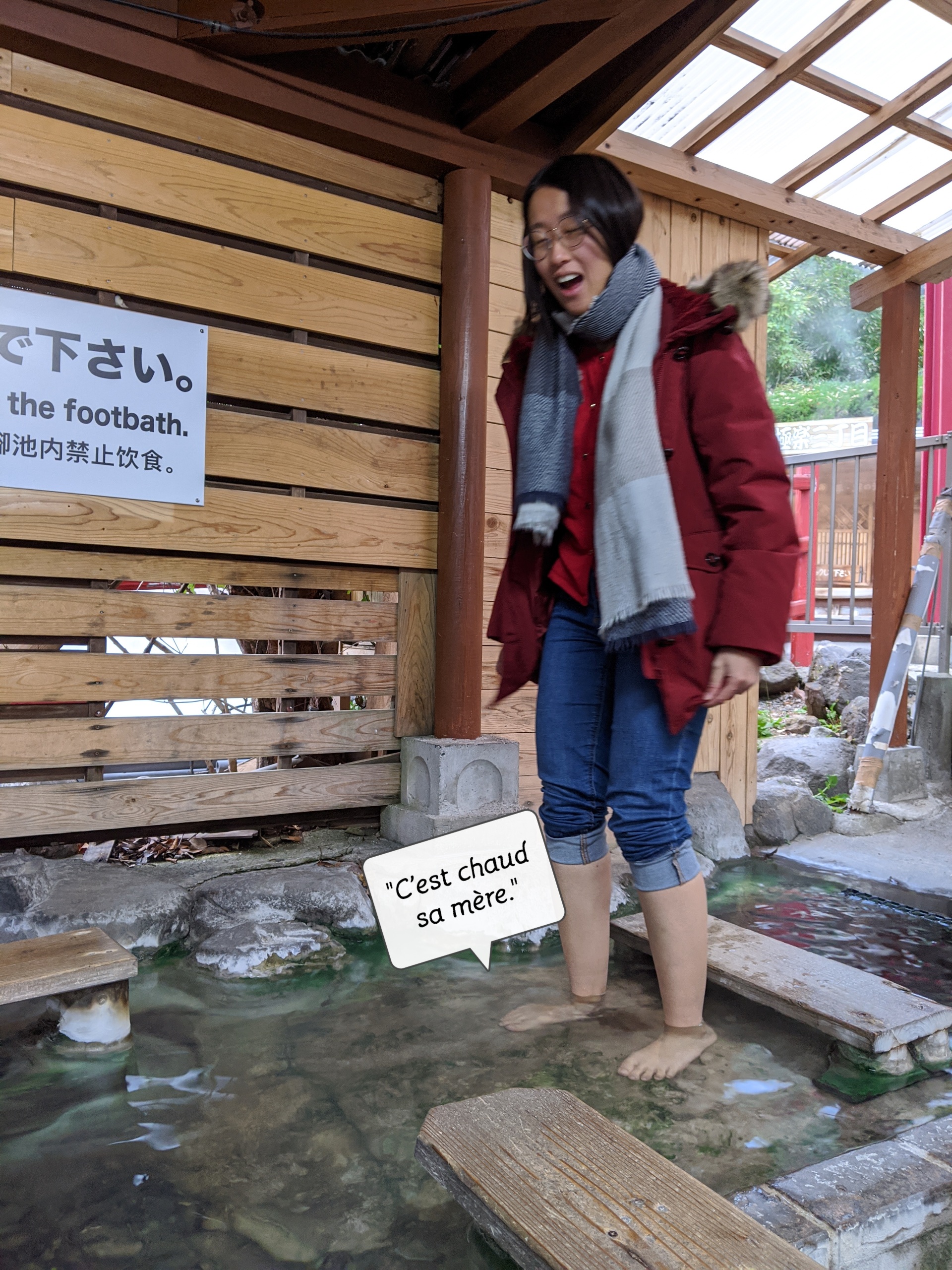 Moment improbable : on s’est fait embarquer dans une visite guidée des sources (en japonais évidemment). On n’a pas trop compris ce qui nous arrivait, mais c’était intéressant !