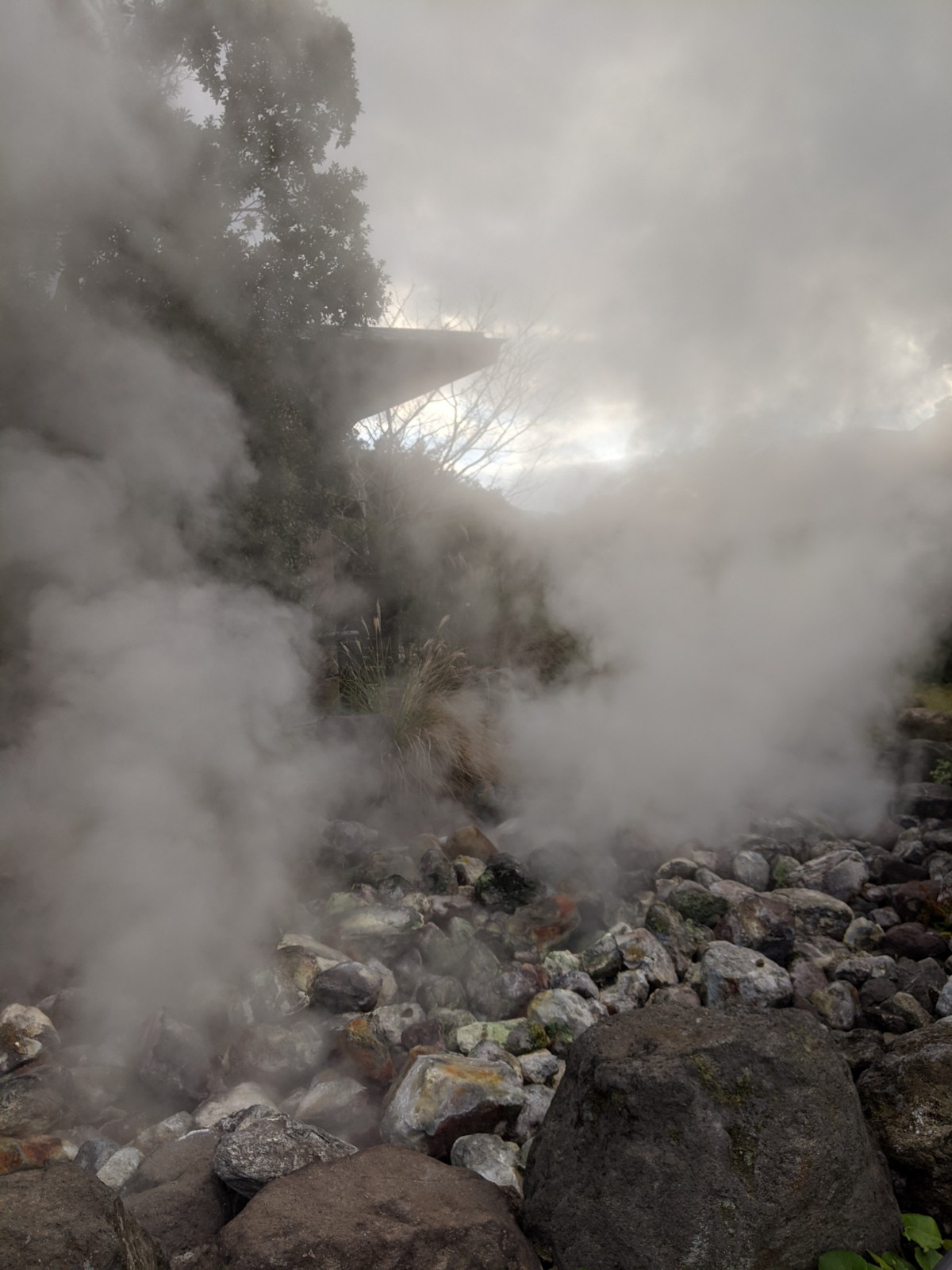 La source semble fumer par les côtés, la vapeur sort des pierres comme s’il y avait une grosse cocotte-minute dessous… À tel point qu’on s’est demandé si tout ceci ne serait pas un peu mis en scène (mais non, apparemment tout ceci est scientifiquement prouvé).