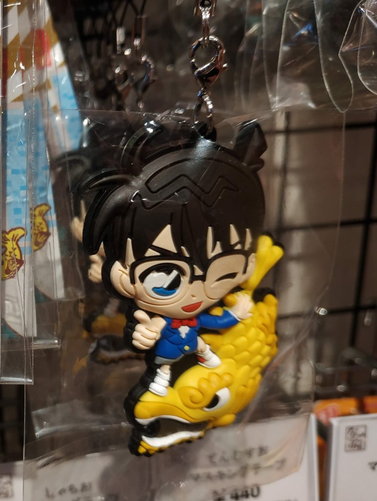 Pour tout vous dire, en arrivant au Japon, nous étions assez étonnées de l’engouement autour de Détective Conan, car nous l’avons croisé un peu partout et sous toutes ses formes, souvent dans des contextes adaptés aux régions où nous étions : figurines, gashapon, chaussettes, cosmétiques, stickers, porte-clés, dvd, etc.