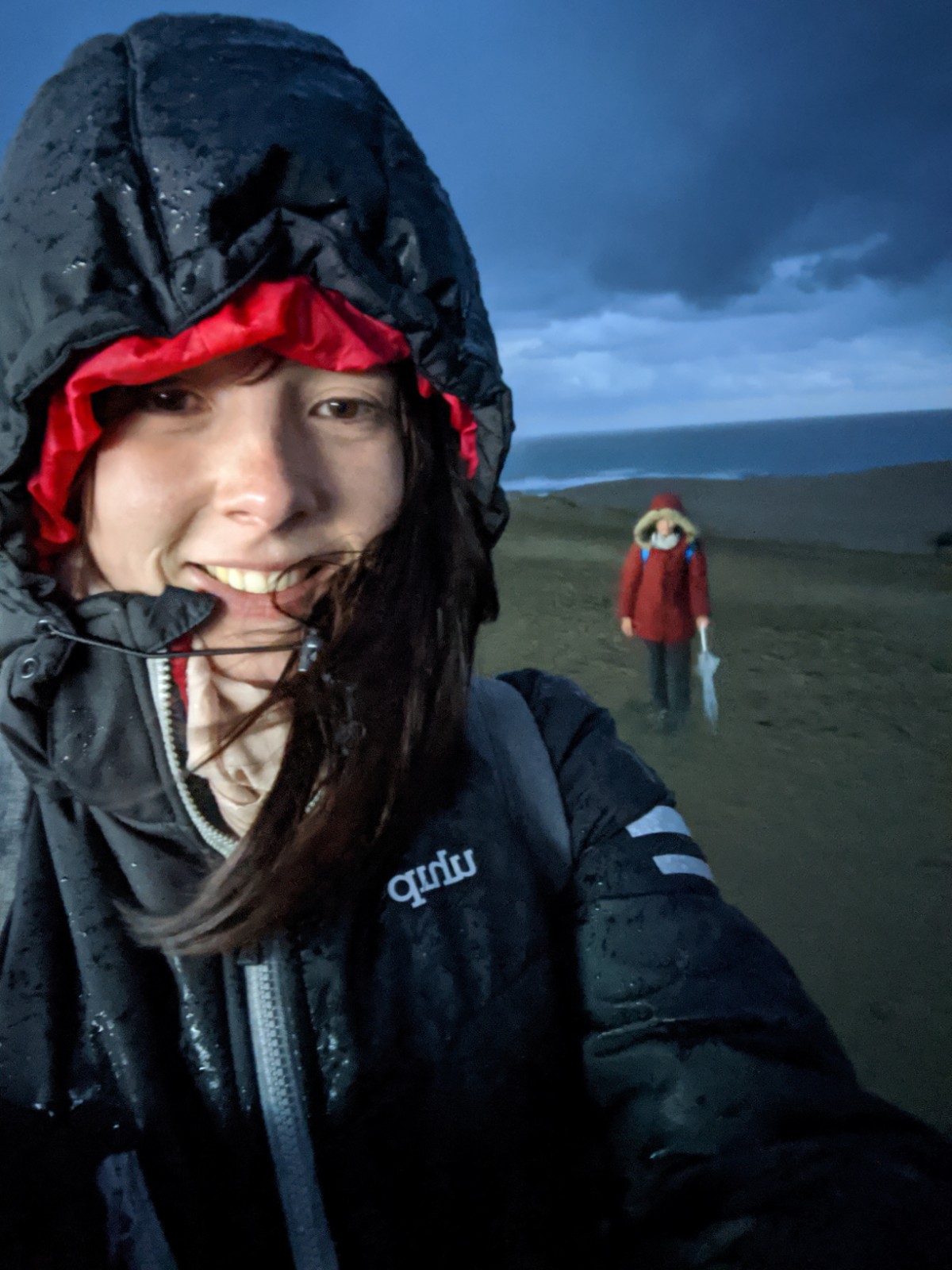 Point de chameaux pour nous, c’est la tempête ! On ne s’en rend pas forcément compte sur les photos, mais elles sont fichtrement hautes, ces dunes. On galère un peu, mais on profite à pleins poumons (et en pleine face) de l’air vivifiant de la mer.