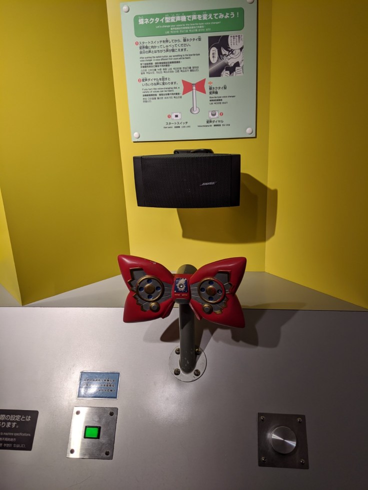 Quelques gadgets de la série sont reproduits dans le musée, type le noeud papillon fabriqué par le professeur Agasa afin que Conan puisse changer de voix et résoudre ses enquêtes en endormant un autre personnage ! On teste quelques jeux interactifs de puzzle, lancé de flèches soporifiques ou encore de skateboard dans Hokuei ^^