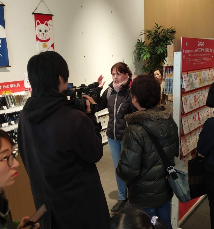 Eh oui, je me suis fait interviewer une 2e fois pour la TV japonaise… Cette fois-ci, il a fallu que je présente une sorte de feutre en dessinant un truc devant la caméra et en disant bien que c’est trop cool. Comment ça, de la pub ? Mais noooon. (Je ne sais plus du tout ce que je leur racontais, mais ça avait l’air intense.)