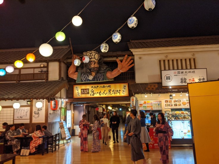 C’est… improbable. Tellement japonais. La partie onsen est top, pleine de bains aux propriétés différentes, de saunas, de bains extérieurs… Bref, tout ce qu’on aime. J’avais un début de rhume, mais il n’a pas résisté à toute cette chaleur/vapeur/séance de bonheur.