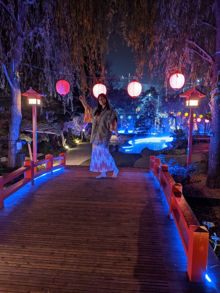 🍙 Oh mais non, attendez ! En fait, ce n’est pas touuut à fait fini : après le shabu-shabu, rien de tel qu’un dernier petit onsen nocturne pour digérer ! Et pas n’importe quel onsen : nous allons à Oedo Onsen, ancré dans un petit village de style ère Edo, dans lequel nous pouvons déambuler en yukata avant d’aller barboter. LE CONCEPT DE GÉNIE.