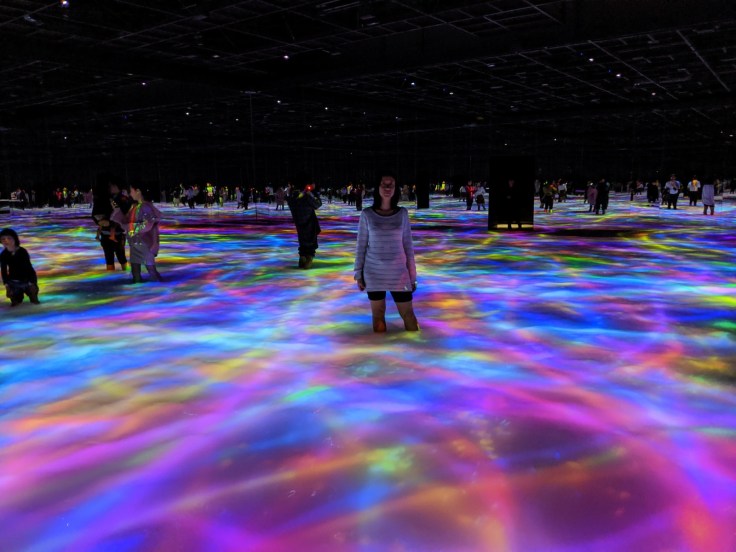 Dur de décrire cette… expérience, à mi-chemin entre une expo d’art moderne et un parc à thème. C’est beau, c’est féérique, c’est hors du temps, on a adoré. Il y a deux TeamLabs à Tokyo, on a fait celui près de Toyosu qui s’appelle Planets (parce qu’il y a une partie où on a de l’eau jusqu’aux genoux et ça avait l’air drôle). On traverse plusieurs salles, le sol change de textures, la lumière joue avec les visiteurs, on marche dans de l’eau, on rampe dans des gros coussins… Plusieurs thématiques, avec 4 pièces principales complètement époustouflantes.
