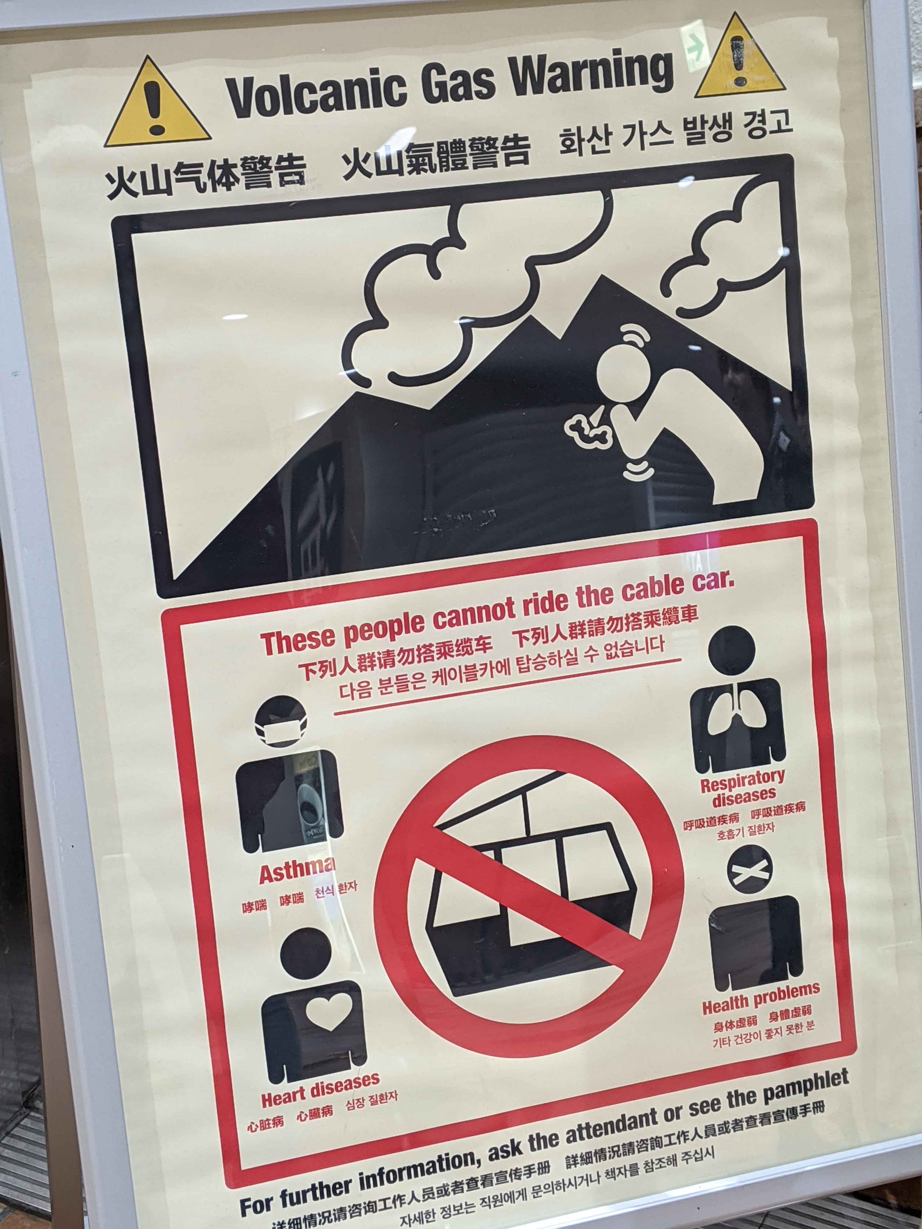 Le téléphérique nous emmène dans une zone à l’activité géothermique forte, ça sent le soufre, ça fume de partout et il y a des panneaux de mise en garde contre les gaz volcaniques tous les 3 mètres. Bienvenue à Owakudani, « la grande vallée bouillante » !
