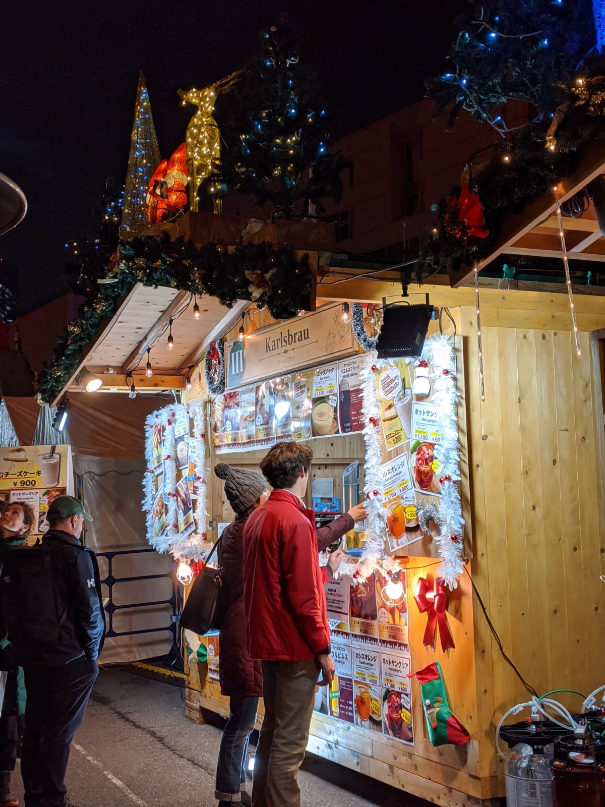 Surprise au pied de ce gros sapin de 333 m de haut : un petit marché de Noël allemand ! Trois cabanons, un peu de bière et des bredele, et nous voilà transportées en Forêt noire (ou presque).