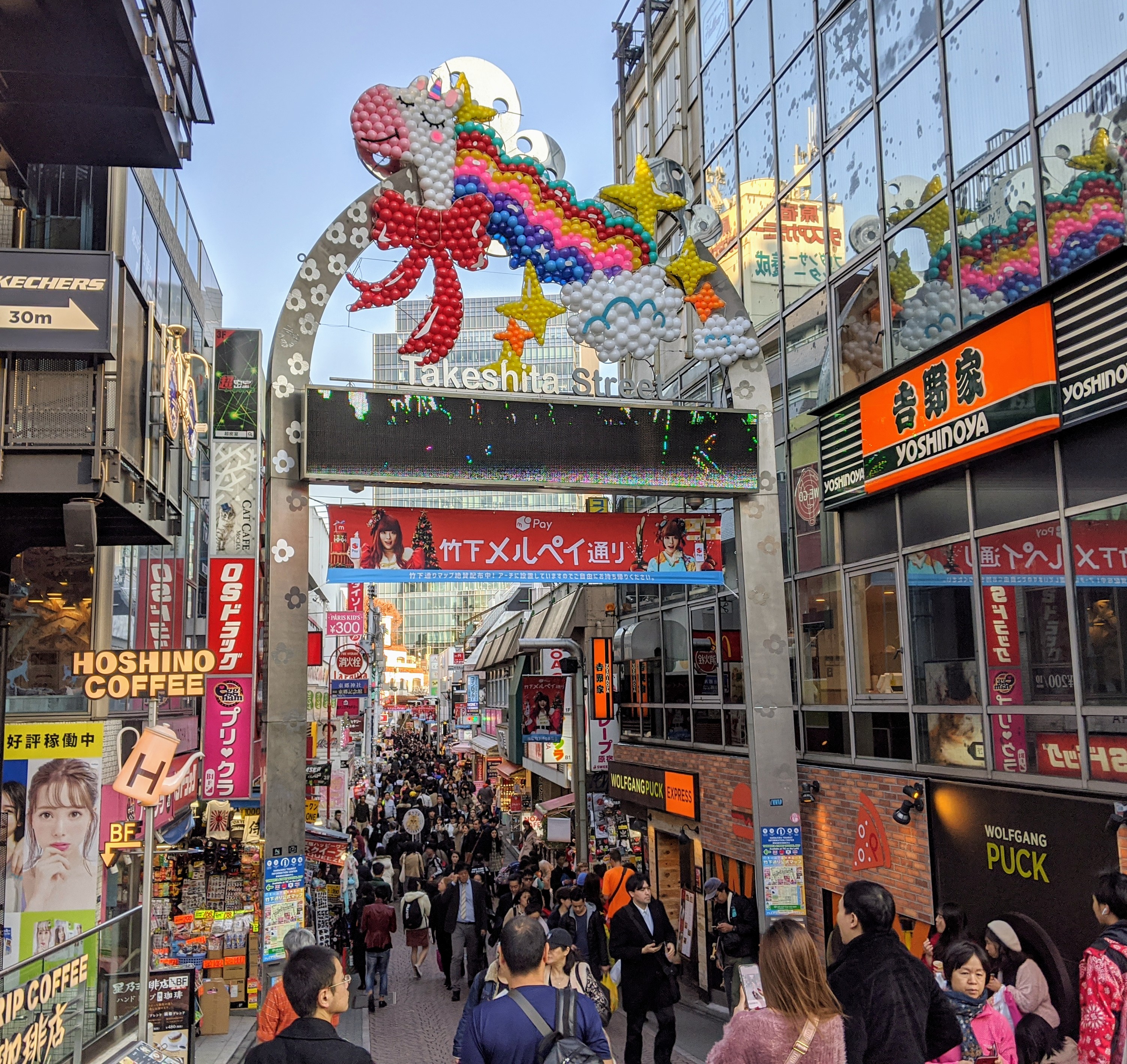 🍙 On retourne aussi à Harajuku pour descendre Takeshita-dori, la rue piétonne principale qu’on avait réussi à louper la 1re fois (mais, comment ?!), avec une légère déception : c’est censé être LE coin où tous les ados un peu excentriques se retrouvent, mais on les a trouvés bien sages… Point de coiffures colorées, ni de costumes improbables, ni de piercings à faire frémir leurs mamans. Il faut se rendre à l’évidence : on est trop vieilles, et la hype de Takeshita-dori n’est plus.