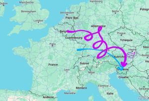 Rapide parenthèse trains : pour aller en Slovénie depuis Strasbourg – ou Bruxelles dans le cas de Nolwenn -, il faut traverser l’Allemagne et donc emprunter le réseau de la DB, ce qui se place très haut sur l’échelle de la galère ces derniers temps. Nolwenn a mis 26 heures, pour vous donner une idée.