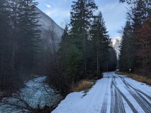 On poursuit en direction de la ville de Kranjska Gora et du Jezero Jasna, un petit lac artificiel qui respire bon le tourisme friqué de montagne, mais je vous le donne en mille : EN NOVEMBRE Y A PERSONNE (bonjour les vacances de misanthropes).
