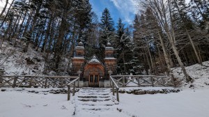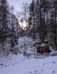 En poursuivant après le lac, on emprunte une petite route de montagne souvent fermée en hiver (et on a vite compris pourquoi, même si elle était encore ouverte à ce moment-là). Objectif : la Ruska Kapelica, ou chapelle russe pour les non-bilingues, une petite chapelle orthodoxe en bois toute mignonne cachée au milieu des bois (et construite par des prisonniers de guerre russes pendant la Première Guerre mondiale, beaucoup moins mignon).
